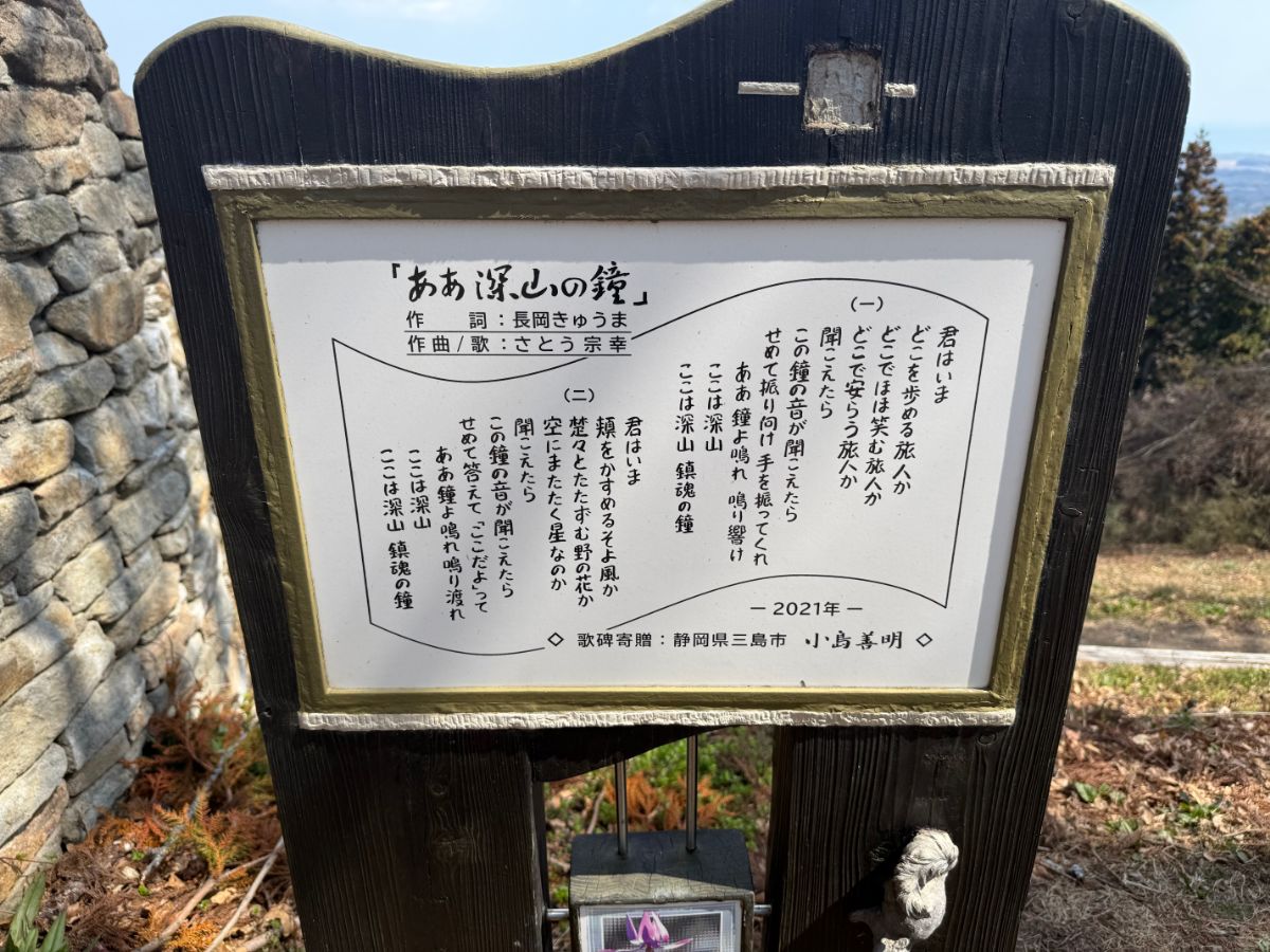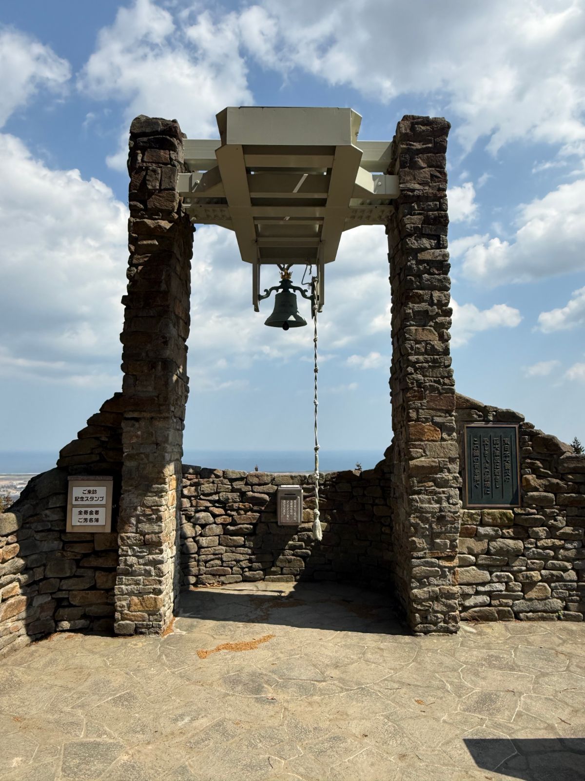 山頂には東日本大震災で亡くなられた方々へ祈りを捧げる「鎮魂の鐘」があります。